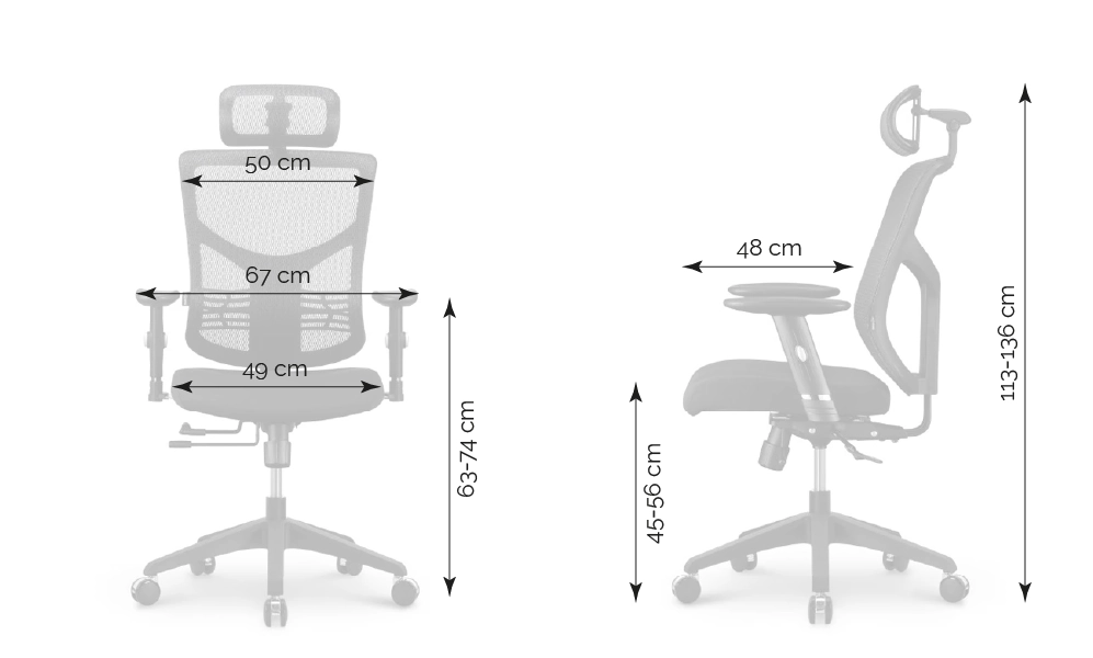 Med naprednimi funkcijami najdemo še nastavitev globine in višine sedeža (do 12 cm), nastavljivo višino hrbtišča ter dinamično ledveno oporo, ki se prilagaja po višini in globini za optimalno podporo ledvenemu delu. Nosilnost stola znaša do 150 kg, kar omogoča zanesljivo in dolgotrajno uporabo tudi pri intenzivnejši obremenitvi.